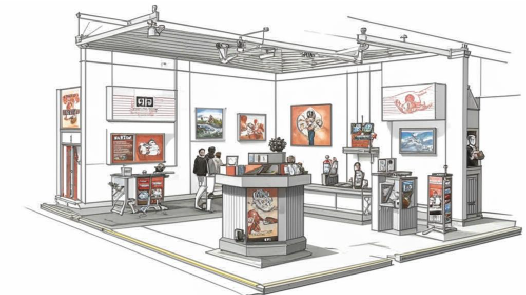Брифинг начинается с обсуждения планировки, а также уточнения желаний заказчика по дизайну стенда. Обсуждаются конструкционные и отделочные материалы, список оборудования или товаров для стенда.
